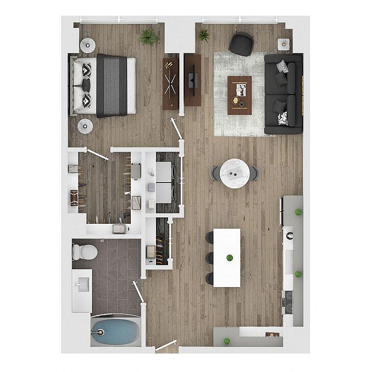 Coppia offers studio, 1, and 2-bedroom luxury apartments and penthouses for rent in Chicago, IL. Our pet-friendly apartment community is in an ideal location in the West Loop with easy access to I-290, universities, shopping, dining, and top Chicago employers. Each brand-new apartment home includes stainless-steel Samsung appliances, quartz countertops, and chef's kitchens with under-cabinet lighting. Wide plank floors and the convenience of personal laundry are just a few comforts of home tailored to fit your needs. Residents enjoy amenities including an on-site fitness center, golf simulator, clubhouse, game room, outdoor dining and grilling, swimming pool with cabanas, and a pet park and dog spa. Contact us today to schedule a tour and make Coppia your new home!