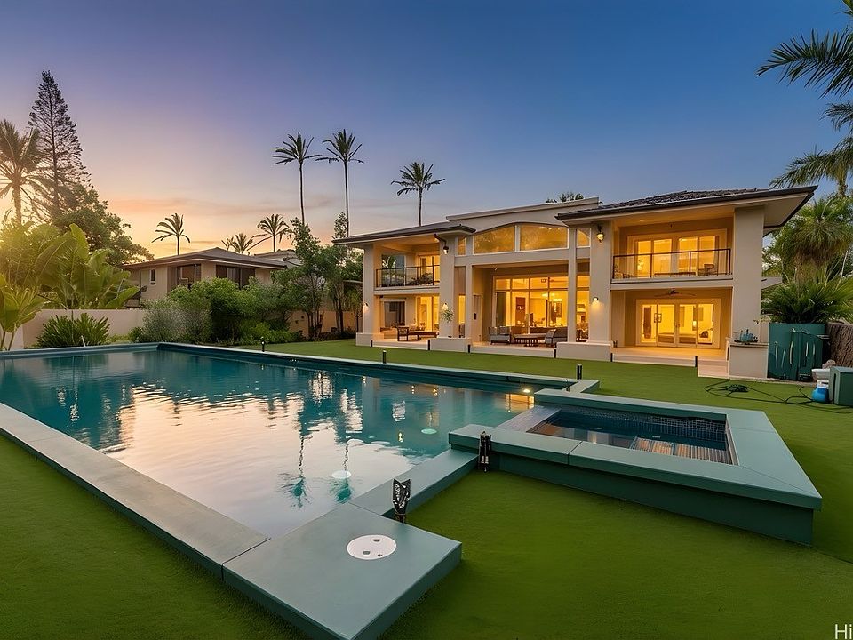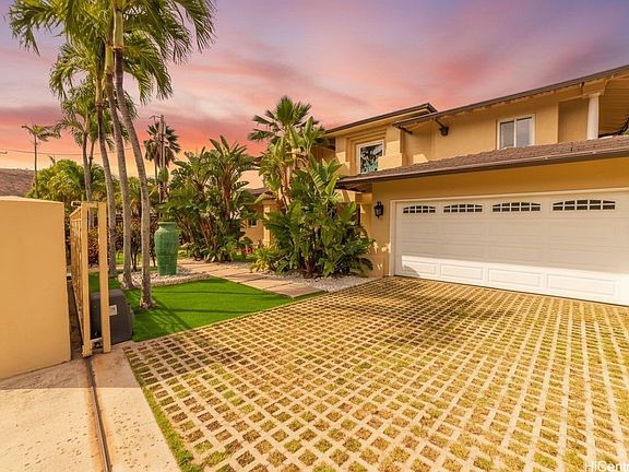 Located in the prestigious Portlock neighborhood, this gated residence offers privacy and close proximity to Maunalua Bay, including ¼ shared ownership in a beach access walkway just steps from the property and convenience of nearby Hawaii Kai amenities, including Costco, grocery stores, dining, and shopping just minutes away. Designed by award-winning architect James McPeak, the home features soaring ceilings, expansive windows, Italian porcelain flooring, and generous interior living spaces. The layout includes five bedrooms with two primary suites, each with a private lanai, a bonus room, along with spa-inspired bathrooms and an in-home sauna. Set on a 13,000+ sq ft lot, the property is complemented by a 50-foot saltwater pool and spa, covered lanai, and outdoor bar area. Recent improvements include a new custom roof (2021), updated windows (2022, excluding select doors), and a solar system subject to a power purchase agreement.