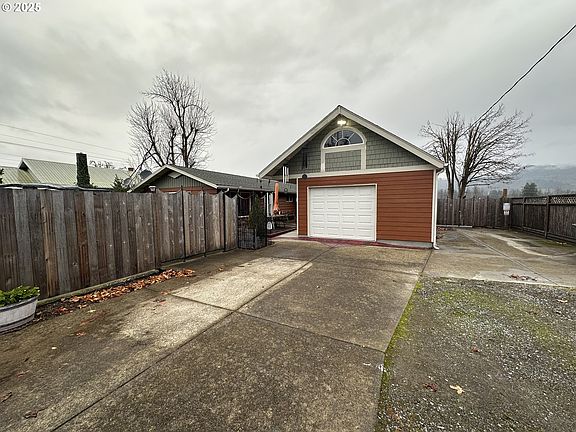 A well-maintained mid-century ranch on a spacious 0.42-acre lot with flexibility and long-term potential. Originally built in 1962, the home benefits from excellent insulation and thoughtful care over the years. Inside, the layout includes three bedrooms and two full bathrooms, with several rooms featuring original hardwood floors that add warmth and character. A generously sized family room provides flexibility and could easily be converted into a fourth bedroom, home office, or bonus space. Two full-sized bathrooms, one includes a jetted tub, while the other offers a walk-in shower for everyday convenience. The kitchen is well equipped with stainless steel appliances, an induction cooktop, and a pot filler, making it both functional and appealing for anyone who enjoys cooking. An oversized laundry room adds valuable space for storage, organization, or utility use. Decked attic space over the family room. Outside, the fully fenced front yard, RV parking, and detached oversized one-car garage (492 sq ft) provide practical versatility. The garage includes a custom-built powered lift for getting items in/out of storage above. The backyard features a large patio and the yard is a blank canvass ready for your vision! If you need more storage there is ample room to build a shop. The rear windows and outdoor space capture beautiful views of the Coburg Hills to the north. The property also backs to approximately 30 acres of Weyerhaeuser land, offering a peaceful, open backdrop and added privacy. This home delivers space, flexibility, and a rare setting, making it an excellent opportunity for buyers seeking solid construction with room to personalize and grow.