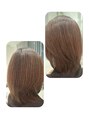 前回から少し間が空いてしまい、気になるつむじのくせが出てきてしまっていました。 段を多めに付けてパーマも根元からしっかり掛けていただいたので、今は落ち着いています。 段が付いた分、…