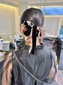シニヨン/タイトヘア/お呼ばれヘア/結婚式/ベロアリボン