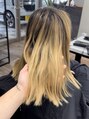 バレイヤージュケアブリーチダブルカラー切りっぱなしボブ外ハネ