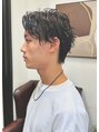 無造作な動きのツイストパーマで動きをつけてセンターパートに。ウェットな質感になるスタイリング剤で色っぽさをプラス。マッシュからの伸ばしかけにもオススメ
