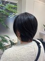 ボブスタイルに毛先にパーマをかけました。スタイリングも、ハーフドライ後に毛先にワックスを揉み込み簡単仕上げです。ドライ時間も短く、まだまだ熱い日々にピッタリです。