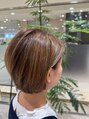 明るめトーンのショートボブです、ハイライトが綺麗に発色するスタイルです。今回はブローで仕上げました。ハイライトでの表面の艶感を活かして仕上げてあります。