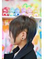 今回はおまかせでカットさせていただきました。カットでかなりインパクトをつけたスタイルです。カラーは、極端に派手にせず、ポイントで原色をいれてみました。