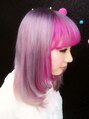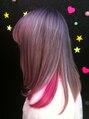 - 元々ブリーチしている髪に、ブリーチを2回してうすーいパープルのカラーにポイントでピンクをいれました。