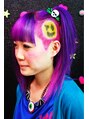 うちの専属モデルのかえでしゃんです。今回は、紫ベースでカラーのメッシュもいれつつ、刈り上げはデッドスマイルをいれました。毎回、いろんなネタを考えてるんですけど、だんだん尽きてくるんですよね。次回も期待してください。