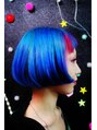 - ブリーチ後、MANICPANICのレッドでフロントを、その他をブルーで染めました。