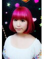 あごラインのボブにカットして、ブリーチのリタッチをした後、全体にカラーバターのチェリーピンクをいれました。結構薄めの色なんですけど、派手すぎないピンクです。かなりブリーチしてないと入らない色です。