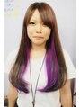 - 全体をブリーチ後、内側をカラーバターのパープル、その他をアッシュ系のカラーで染めました。