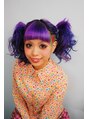 プリンになってて元々ついてたエクステを生かして落ちかけブルーからショッキングパープルを薄めて染めました。ブリーチをよくしてる髪や細い髪は色が入りやすく抜けやすいです。刈り上げはハート型でグリーンをベースにハートはピンクにしました。