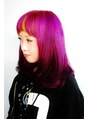 暗めのカラーにしてて久々にブリーチをしたのですが元々ブリーチをしていたのでしっかりぬけました。全体をカラーバターのショッキングパープル、フロントをマニパニのエレクトリックバナナにしました。