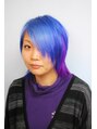 元々何回かブリーチしてあったので、プリンを直してさらに明るくしてMANICPANICのブルーをメインにポイントでパープルを入れました。水色が希望だったのですが、すぐ落ちる可能性があるので、濃い色を入れて色落ちを楽しむのがベストだと思います。