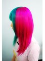 りえちゃんです。ブリーチした後、ピンク、グリーンのツートンにしました。植物のカラジュームみたいなカラーになりました。定番ツートンにパッツンってかわいいですね。