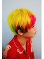 あむちゃんです。今回、元々ブリーチしてたのでブリーチはなしで全体をマニパニのエレクトリックバナナ、フロントをホットホットピンク(20%)サイドにオレンジとブルーをいれました。全体カラフルでかわいくなりました。