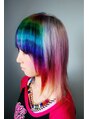 かなえちゃんです。前は、白黒のボーダーをやったんですけど、今回は、レインボーグラデーションのボーダーにランダムミックスなカラフルカラーです。半頭残したんですけど、そこは薄くグラデーションになっていいかんじの色移りになりました。