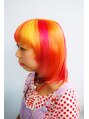 おぐちゃんです。全体をブリーチしてイエロー、レッド、オレンジの三色をストライプ状にいれました。パプリカみたいでかわいくなりました。