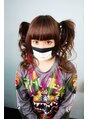 STAFF?のせななんです。今回はエクステだけです。退色考えて地毛より少し明るめにつけました。ポイントで赤のエクステもいれました。巻いてツインテールするとかわいいですね。