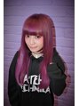 BERRYZの星名まりなちゃんです。全体を暗めのパープル系に染めてポイントでティンセルをつけました。派手すぎず地味すぎない感じのいいスタイルになりました☆