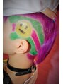 パープルをベースに、フロントをブルーグラデに、刈上げはグリーンとピンクのボーダーにしてにこちゃんをいれました♪