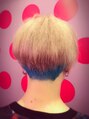 久しぶりの派手髪メンズです。2回ブリーチをしてバングにパープル、刈上げ部分を水色に全体はシルバーベージュにしました。