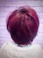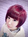 ゆるめるモ!のしふぉんちゃん来てくれました。ブリーチをしてインフラレッド、フューシャショック、アジアンブラックの3色ミックスで染めました。主張しすぎない感じでいい色になりました(^^♪