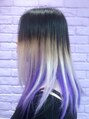 しっかりブリーチしてしっかり黄みを消したグラデを作ってインナーに青紫で冷たく!冬感が出て触りたくなるやつだね