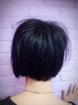 MEJIBRAYのメトくん来てくれました。今回は、片サイドをブルーにして全体を黒にしました。カットは襟足を短くして、前下がりにして、フロントは長めで重めに仕上げました。