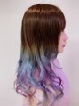 上部をナチュラルなアッシュブラウンに毛先を淡く青と紫で染め仕上げた締まりのあるグラデーションカラー!これはモテるし可愛いしやらないの勿体ないぞ!