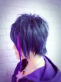 光月樹里ちゃん来てくれました。ブリーチして、そこまで明るくならなかったのですが、暗めのブルーとパープルをミックスさせて、仕上げにティンセルとカラーエクステをつけました。