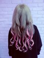 TORIENAちゃん来てくれました。全体をブリーチして、 シルバーをいれて、シルバーとピンクのエクステをつけました。