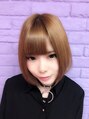 62ちゃんです。ブリーチをして、ムラを無くすように暗めのシナモンベージュをかぶせました。カットは、襟足ギリギリくらいのボブにしました。