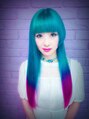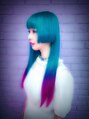 礼夏さんです。黒髪から、ブリーチを4回して、ブードゥーブルーの20%から、フューシャショックの10%のグラデーションにしました。