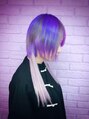 平成墓嵐のゆりあんぬちゃんです。ブリーチリタッチした後、ウルトラバイオレット、ショッキングパープル、シナモンベージュ、ショッキングブルー(30%)をブロックでいれて、ペールパープルのエクステを襟足に入れていきました。