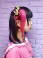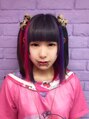 ブリーチを三回して、インナーをレインボー7色をふた回りさせました。トップは暗めのラベンダーアッシュをいれました。ハーフツインテにしたら、すごく目立って可愛いですね。