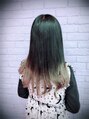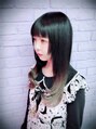 CandyeSyrup下北沢店のスタッフのもこちゃんです。全体はダークアッシュブラック、毛先にうすくラベンダーアッシュを入れました。退色するまで少しブリーチはおやすみですねってカラーです。黒染めでも次染まるようにリタッチをしておきました。