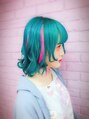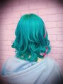 IDOL Candye Syrupのちろちろるちゃんです。ブリーチリタッチして、バイオレットナイトで全体を染めて、エクステをターコイズとバイオレットナイトをつけました。ポイントでティンセルもつけました。