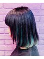 派手にバチバチしがちなダブルカラーだけれど、アッシュバイオレットにミントグリーン忍ばせて落ち着いた印象を表現。こういった風に仕上げておくと浮世離れた感じを払拭できるぞ。