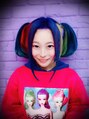 元々、黒染めしてたので、明るくなりにくかったのですが、ブリーチを何度かして、トップはBLUE 、インナーをレインボーにして、刈り上げは4色にしました。ダークな感じのレインボーになりました。