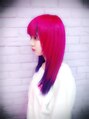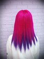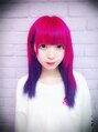 奈胡みみちゃんです。ブリーチリタッチ中心にして、トップをピンク(チェリーピンク、フューシャショック)にしてインナーをパープル(カラーミューズ)にしました。原色メインでインパクト出たと思います。