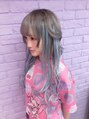 iDOL CandyeSyrup のそく しあんちゃんです。ベースを暗めのシルバーにして、エクステを水色を中心に、ピンクのメッシュをいれてティンセルもいれました。
