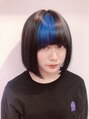 全体のインナーに青と青紫を忍ばせてフロントメッシュで締めた粋なカラーリング!!ブラックもカラートリートメントで仕上げたので褪色はグレー、次回のブリーチカラーにも支障が出づらいぞ!