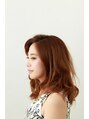 全体的にゆるくカールを付け、流行のフェミニンさを出しつつ、前髪は上げて大人っぽさをプラスしたスタイルです。甘さも出したいけど、大人っぽさも出したいなぁという方にオススメです。