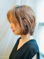 表面は前下がりにカットしているのでめりはりのあるシャープな印象にボブのふんわりとしたシルエットをMIXさせたカジュアルなボブスタイル。ほんのりオレンジ系カラーでツヤ感をプラス。耳かけアレンジでちょいセクシーな印象に☆