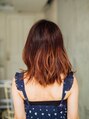 伸ばしかけのミディアムスタイルにカラーでマンネリ脱出! グラデーションカラーにハイライトをプラス。 カラーの色味に直接のせても可愛い!ワンカール外はねに残す事でゆるいウェーブになりニュアンスパーマ仕上がりに。