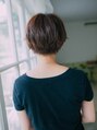 丸いマッシュラインシルエットにカットしたショート。えりあしはぎりぎり短くしてすっきりさせつつもフロントに長さを残しているのでメンズっぽくなりすぎなく女性らしいシルエットに☆カットで作り込んでいるので、すごく簡単に仕上げられますよ!