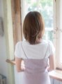 大人フェミニンなミディアムボブは厚みは残しつつ、トップに動きをつけてことでふんわり柔らかな質感に。厚めバングは流して目力効果。丸顔やえらが気になる方にもおすすめなお悩み解消似合わせスタイル!