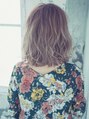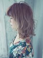 ハイトーンミディアムスタイルです。ブリーチをして上からピンクベージュカラーをオン!Aラインの重ためフォルムに表面は遊びのレイヤーを入れてフリンジのように動きのあるスタイルに。前髪は斜めに分けて隙間を作ると大人の雰囲気に。
