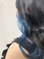 人気のインナーカラーに個性的でカッコいいブルーをON♪ベースは地毛のままなのでインナー部分のみのブリーチです。前頭ブルーも可愛いけど、チラッと見えるさりげないブルーが特に可愛い目を惹くスタイルです^ ^!